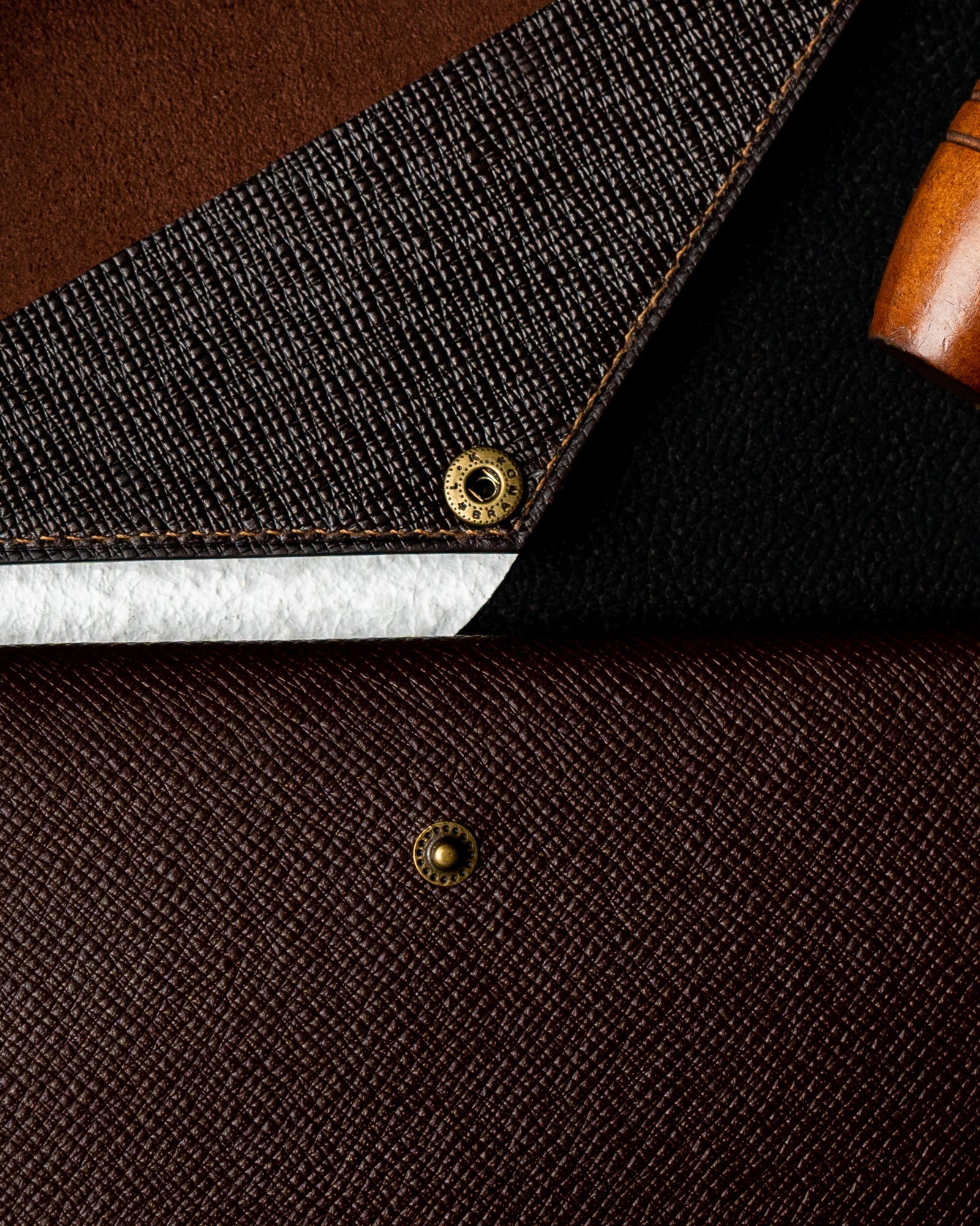 The saffiano embossing adds both character and durability, helping the leather resist scratches while maintaining its structured appearance. The full-vegetable tanning process allows the leather to develop a subtle and beautiful patina over time, enhancing its natural depth and richness.